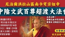 為了利益無邊的眾生,尼泊爾南卡穹宗祖寺預定於中元普渡月2020年9月16日(農曆7月29日)舉辦 《中陰文武百尊超渡大法會》 並特別開放台灣信眾登記參贊。願利一切有情!